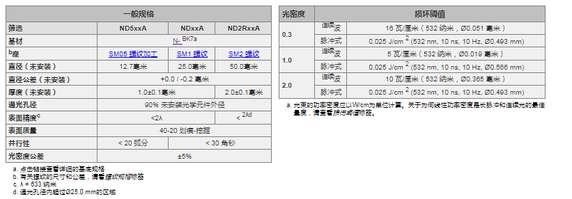 Thorlabs索雷博 ND505A Ø1/2英寸反射型中性密度滤光片