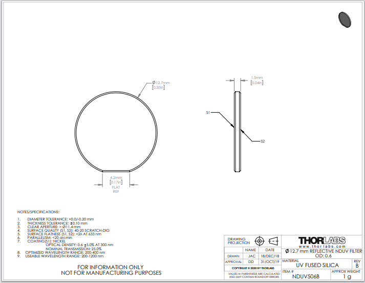 THORLABS 索雷博 NDUV506B 中性密度滤光片