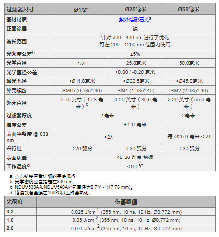 Thorlabs索雷博 NDUV509A 反射型中性密度滤光片