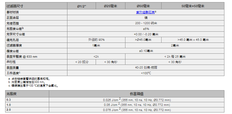 Thorlabs索雷博 NDUV515B 中性密度滤光片