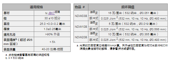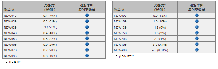 Thorlabs索雷博 NDW03B 楔形反射型Ø25 mm ND滤光片
