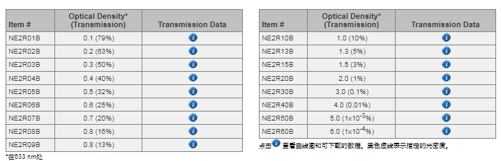 Thorlabs索雷博 NE2R40B 吸收型中性密度滤光片