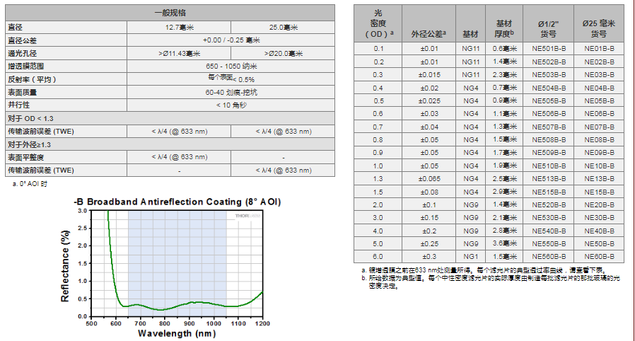 Thorlabs索雷博 NE510B-B 中性密度滤光片
