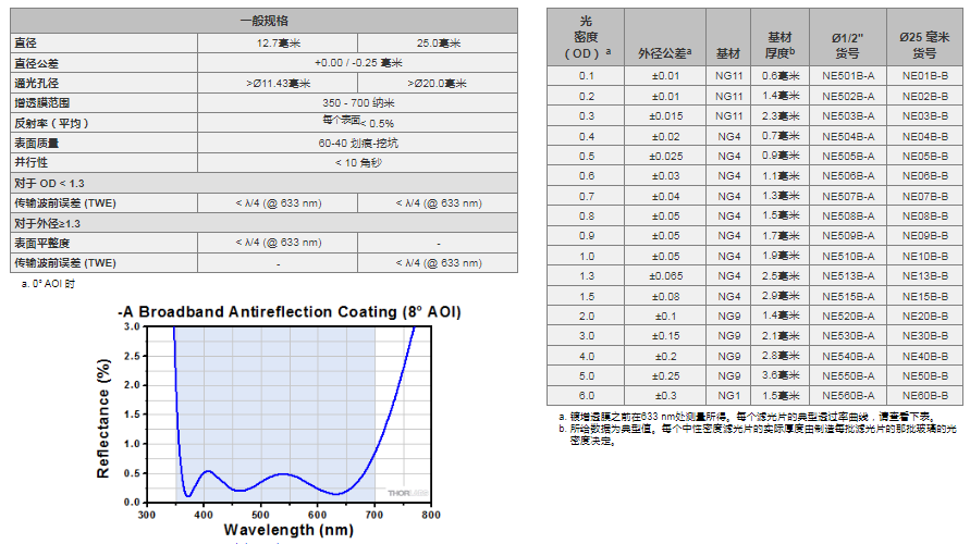 Thorlabs索雷博 NE560B-A 中性密度滤光片