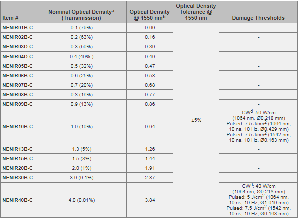 Thorlabs索雷博 NENIR05B-C 中性密度滤光片