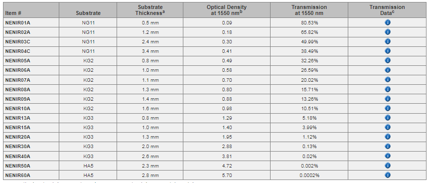 Thorlabs索雷博 NENIR60A Ø25 mm NIR吸收型中性密度滤光片