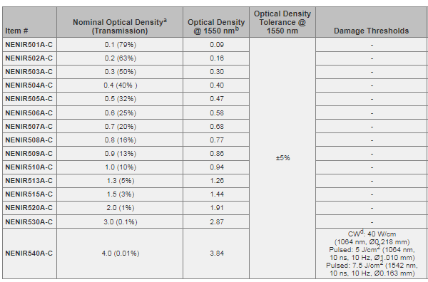 Thorlabs索雷博 NENIR513A-C 中性密度滤光片