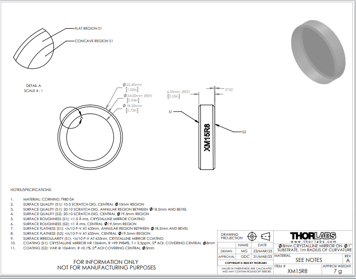 Thorlabs索雷博 XM15R8 凹面超级反射镜