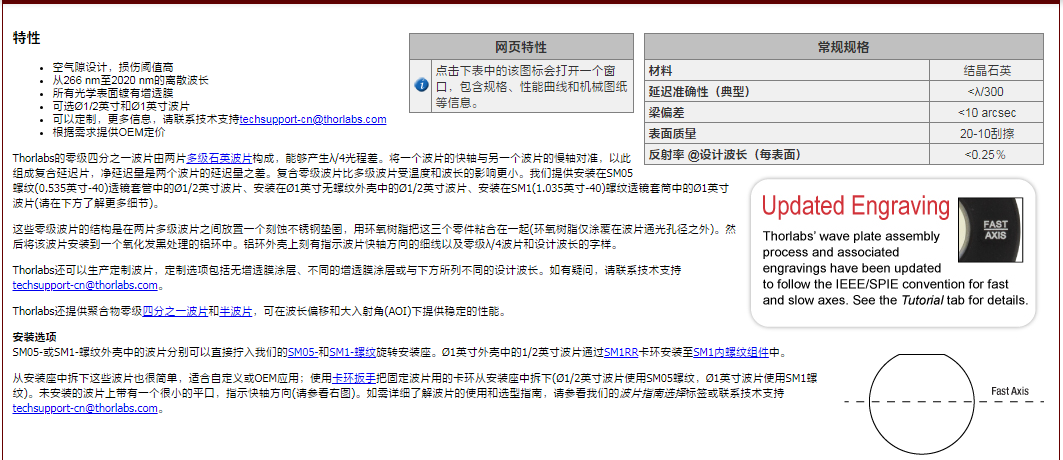 Thorlabs索雷博 WPQ05M-633 - Ø1/2英寸零级四分之一波片