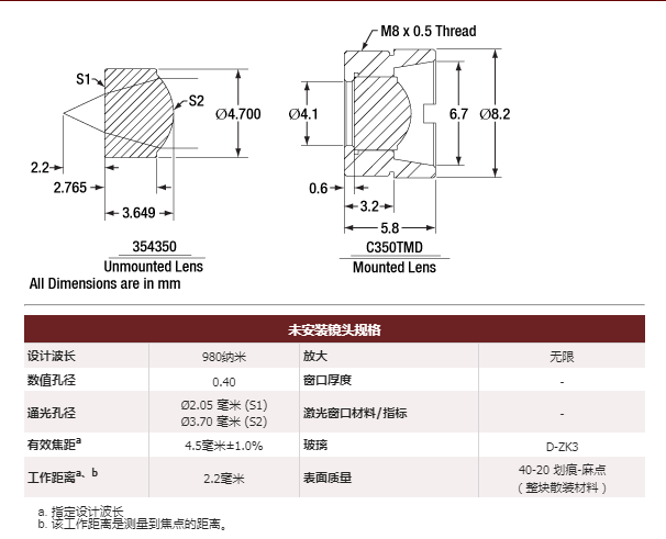 354350-B 非球面透镜