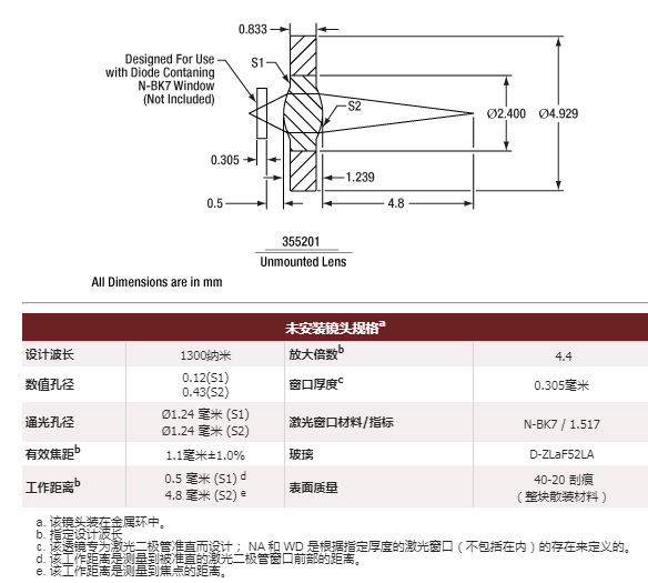 355201 非球面透镜
