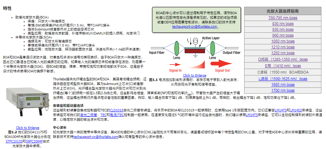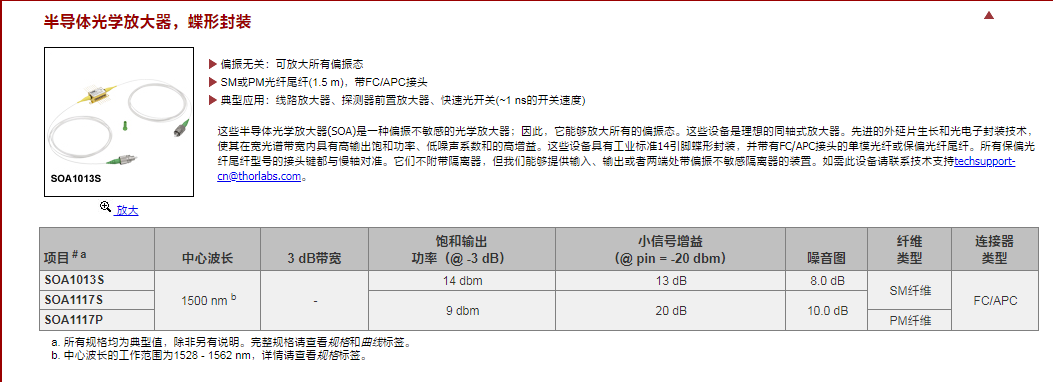Thorlabs索雷博 BOA1007H - C波段助推光学放大器芯片