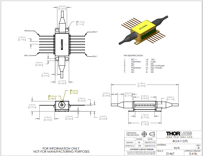 Thorlabs索雷博 BOA1137S - 助推光学放大器