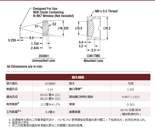 C061TMD-B 非球面透镜