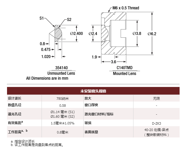 Thorlabs索雷博 C140TMD-C 非球面透镜