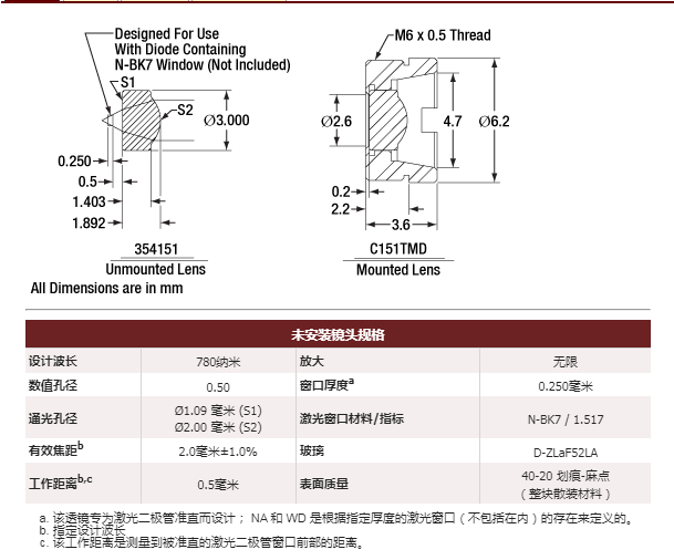 Thorlabs索雷博 C151TMD-B 非球面透镜