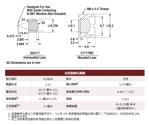 C171TMD-B 非球面透镜