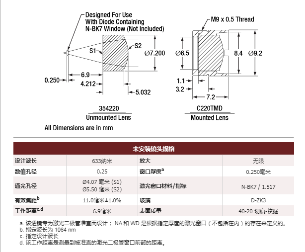 Thorlabs索雷博 C220TMD-1064 非球面透镜