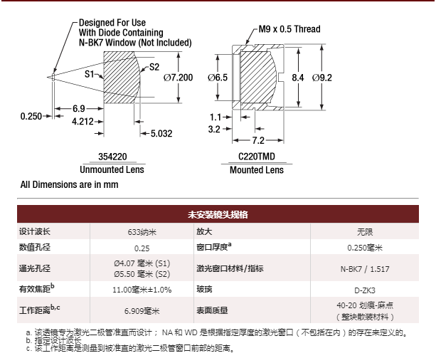 C220TMD-B 非球面透镜