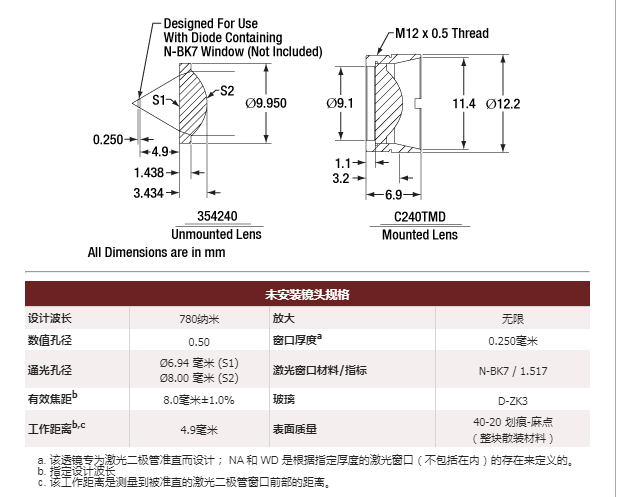 Thorlabs索雷博 C240TMD-C 非球面透镜