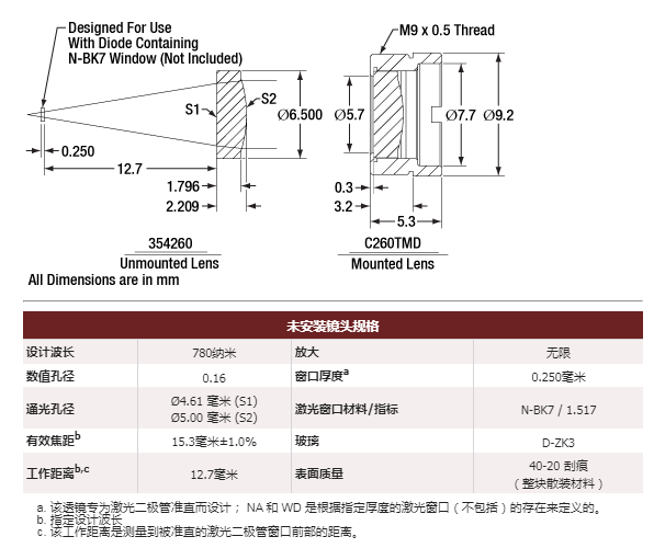 Thorlabs索雷博 C260TMD-B 非球面透镜