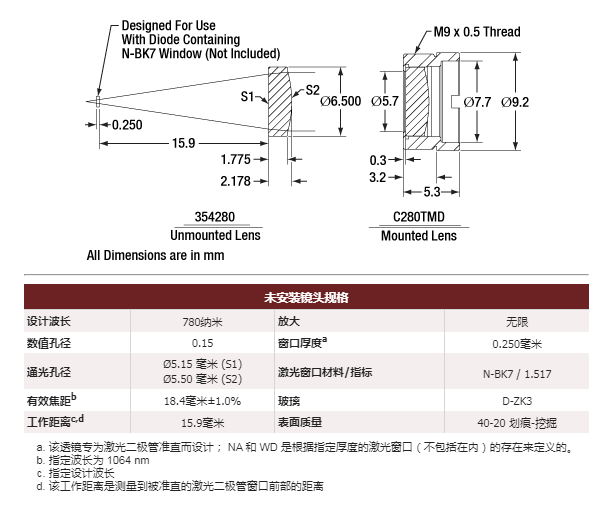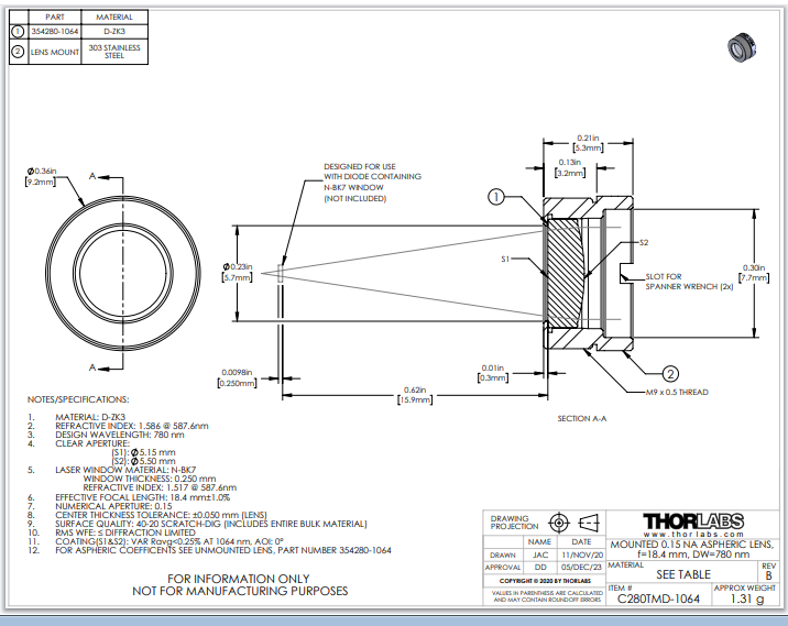 Thorlabs索雷博 C280TMD-1064 非球面透镜
