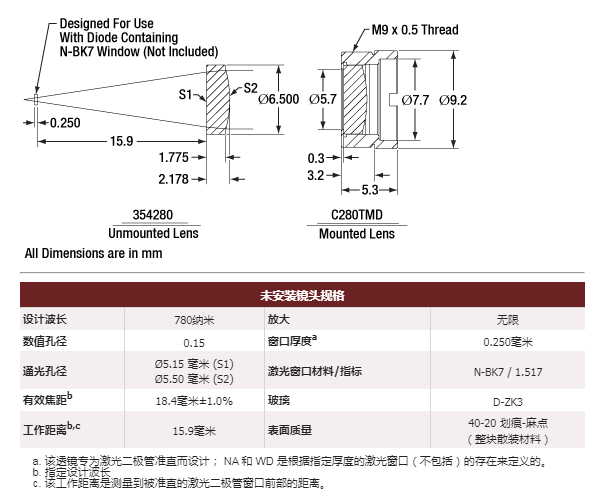 Thorlabs索雷博 C280TMD-A 非球面透镜