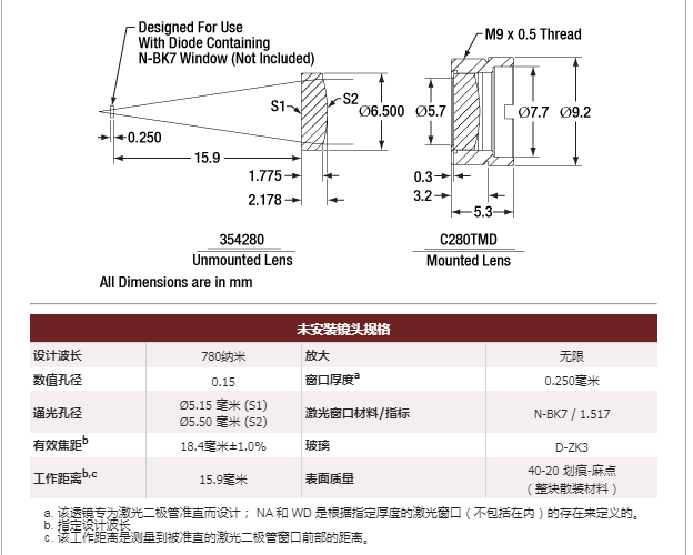 Thorlabs索雷博 C280TMD-C 非球面透镜