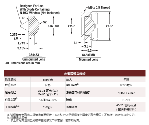 Thorlabs索雷博 C453TMD-A 非球面透镜