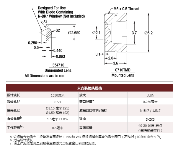 Thorlabs索雷博 C710TMD-C 非球面透镜