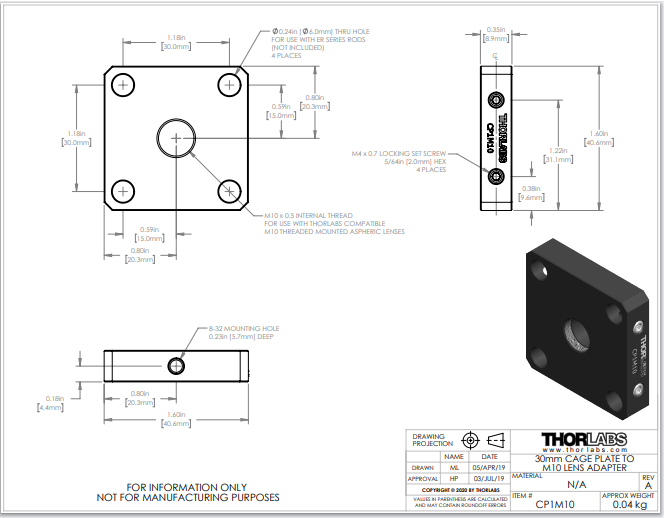 THORLABS 索雷博 CP1M10 - 30 mm笼板