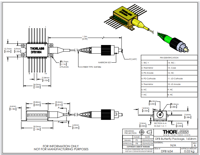 THORLABS 索雷博 DFB1654 - DFB激光器
