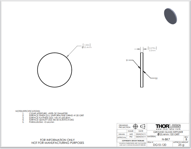 Thorlabs索雷博 DG10-120 - N-BK7磨砂玻璃散射片