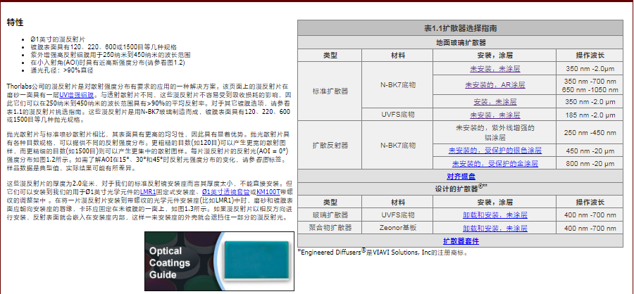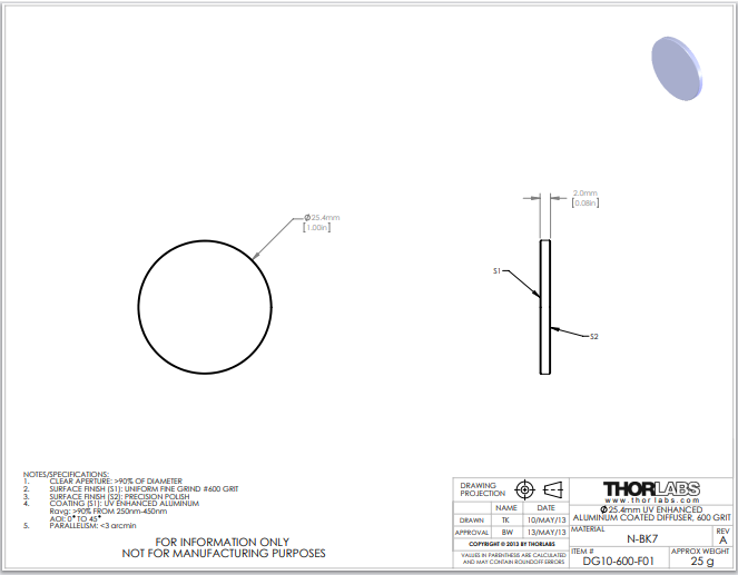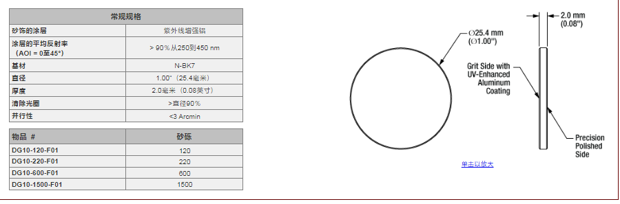 Thorlabs索雷博 DG10-600-F01 - Ø1英寸紫外增强铝膜玻璃漫反射镜