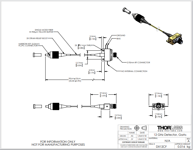 THORLABS 索雷博 DX12CF - 超快探测器模块