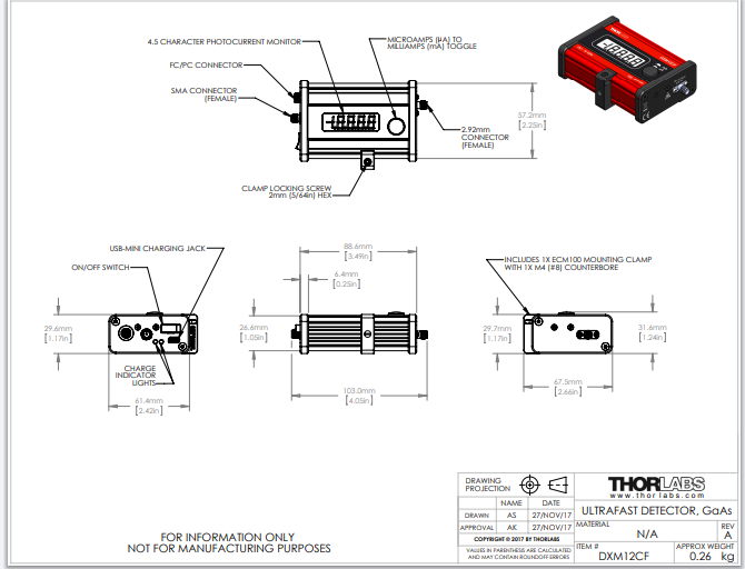 Thorlabs索雷博 DXM12CF - 单模超快探测器