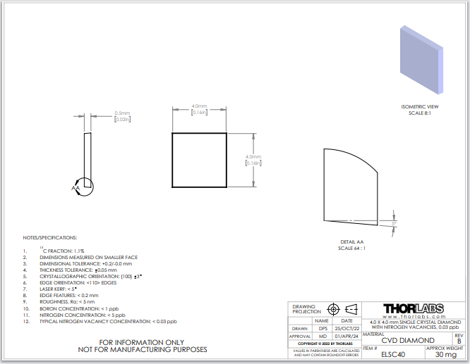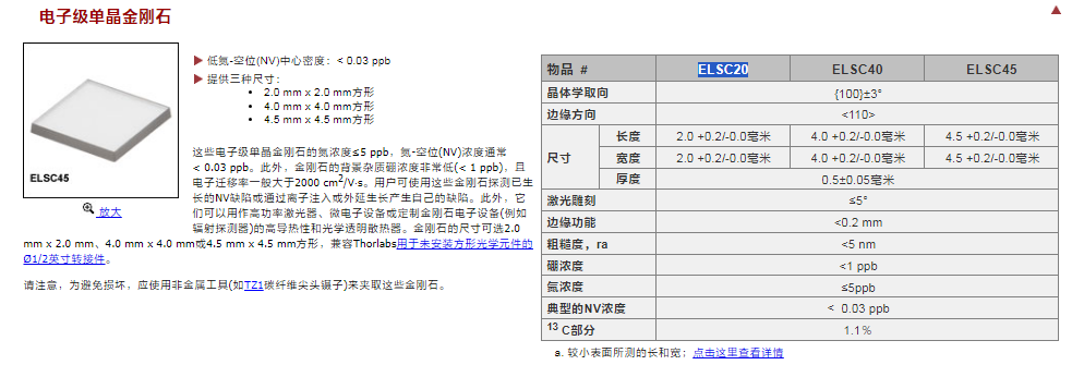 THORLABS 索雷博 ELSC40 - 单晶金刚石