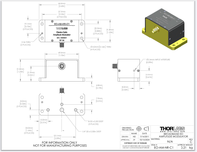 Thorlabs索雷博 EO-AM-NR-C1 - 电光振幅调制器
