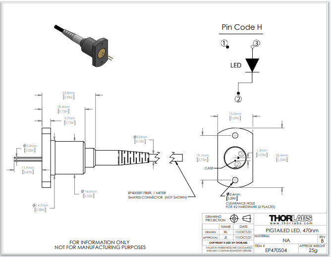 Thorlabs索雷博 EP470S04 - 带尾纤的LED