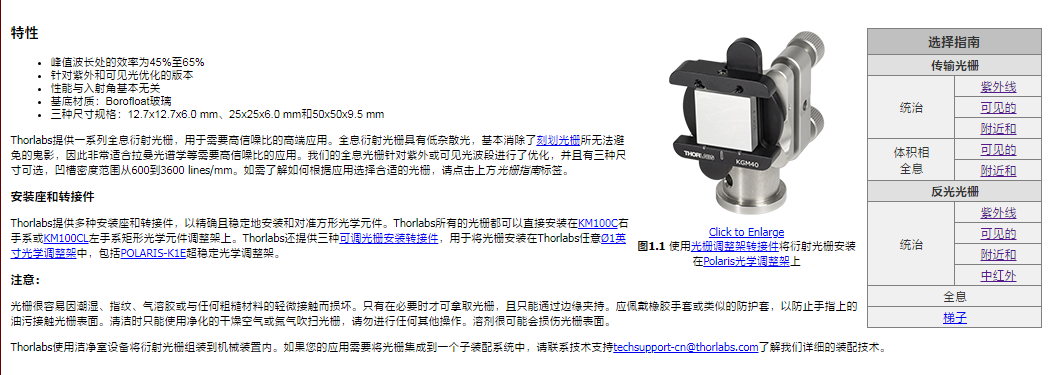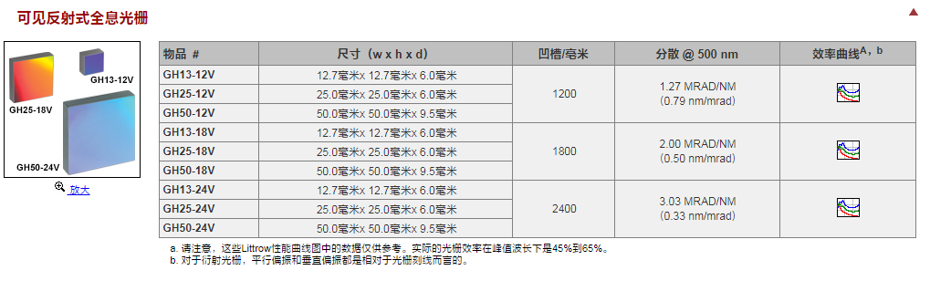 Thorlabs索雷博 GH13-12V - 可见反射式全息光栅
