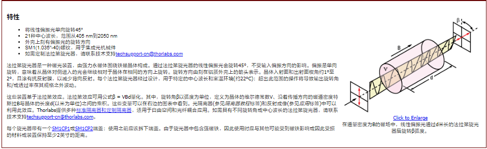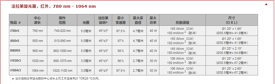 Thorlabs索雷博 I1064R3 - 45°法拉第旋光器
