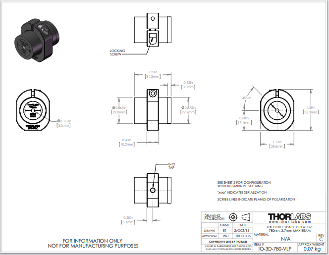 Thorlabs索雷博 IO-3D-780-VLP - 自由空间隔离器