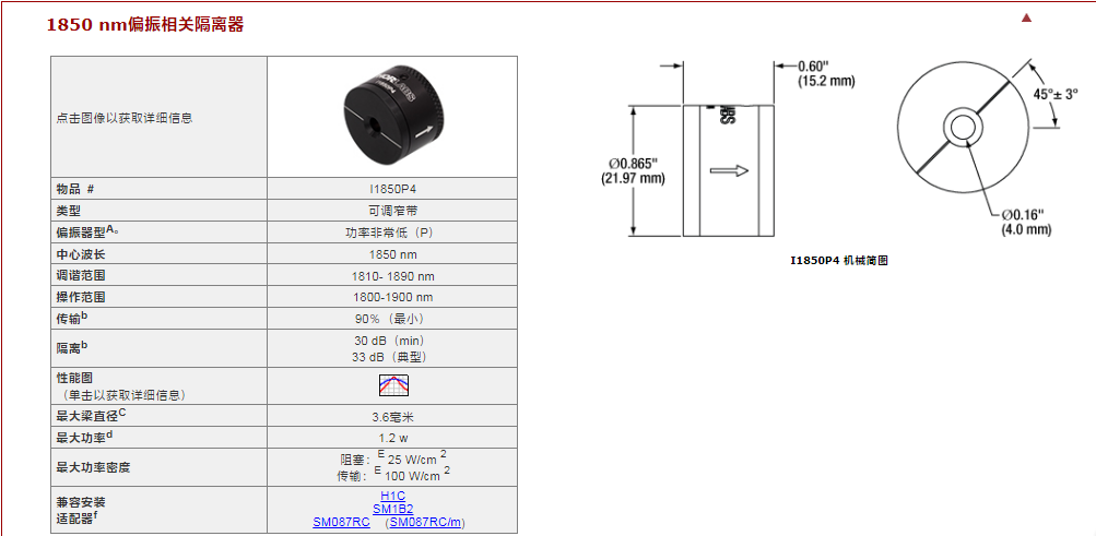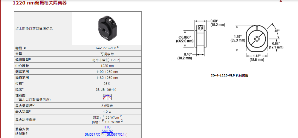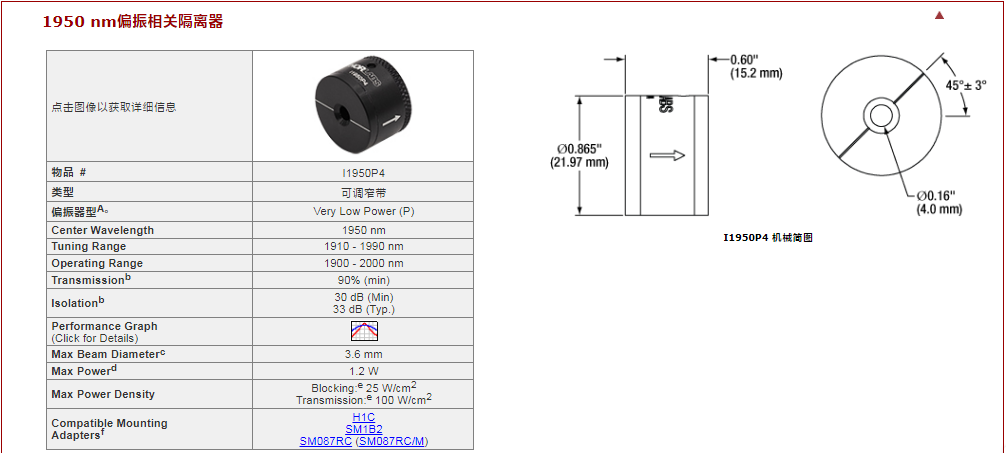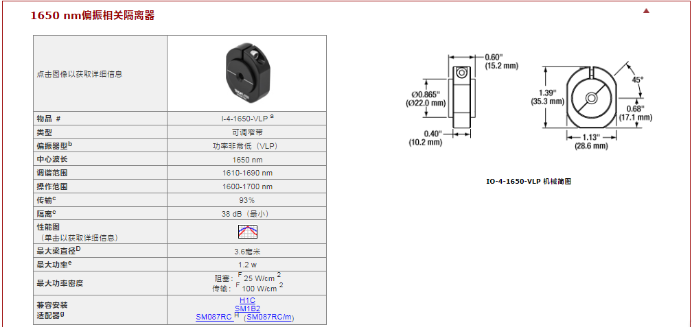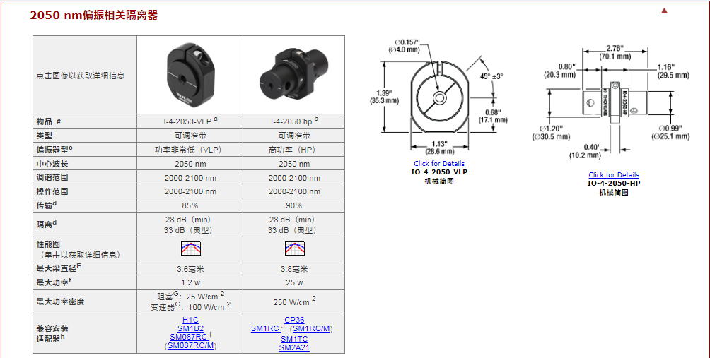 Thorlabs索雷博 IO-4-2050-HP - 自由空间隔离器