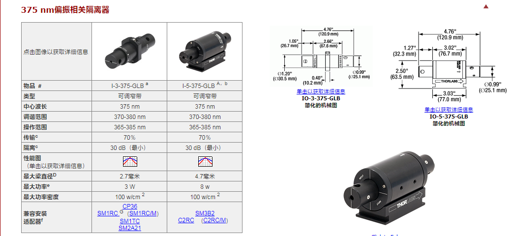 Thorlabs索雷博 IO-5-375-GLB - 自由空间隔离器