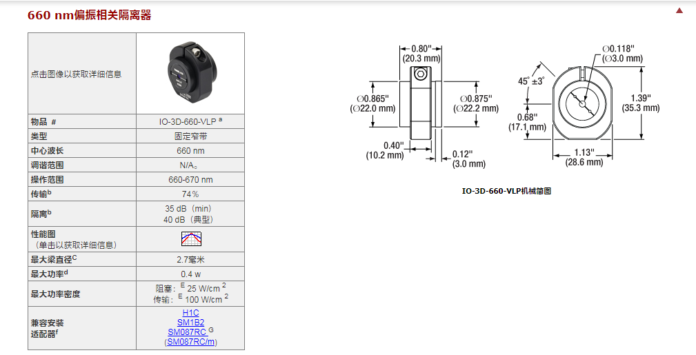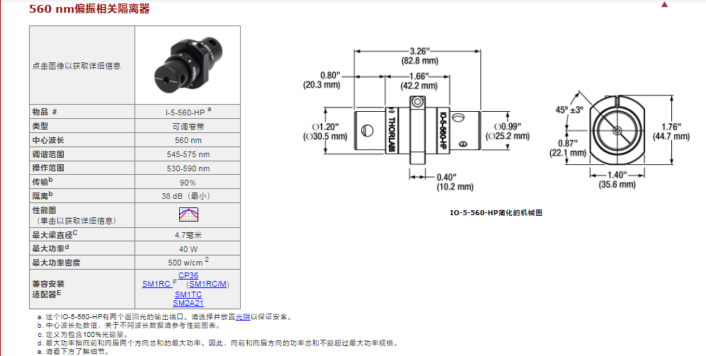 Thorlabs索雷博 IO-5-633-VLP - 自由空间光隔离器