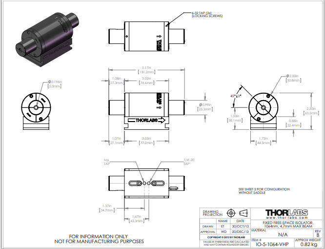 Thorlabs索雷博 IO-5-1064-VHP - 自由空间隔离器