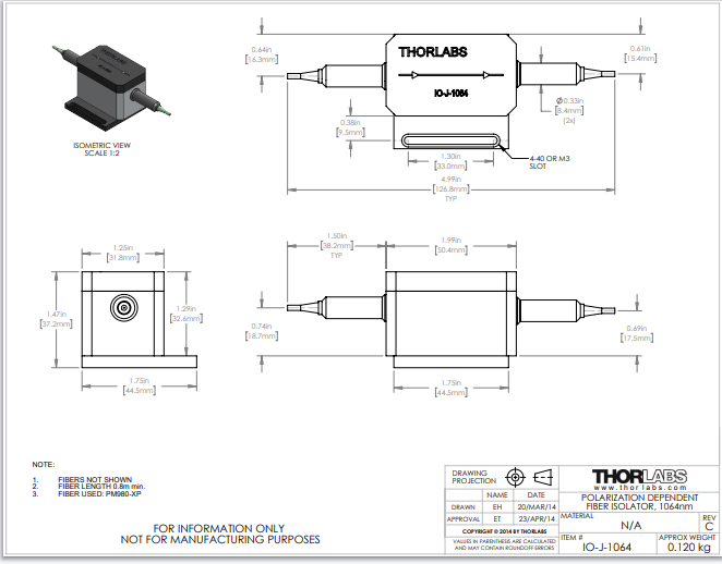 Thorlabs索雷博 IO-J-1064 - 光纤隔离器