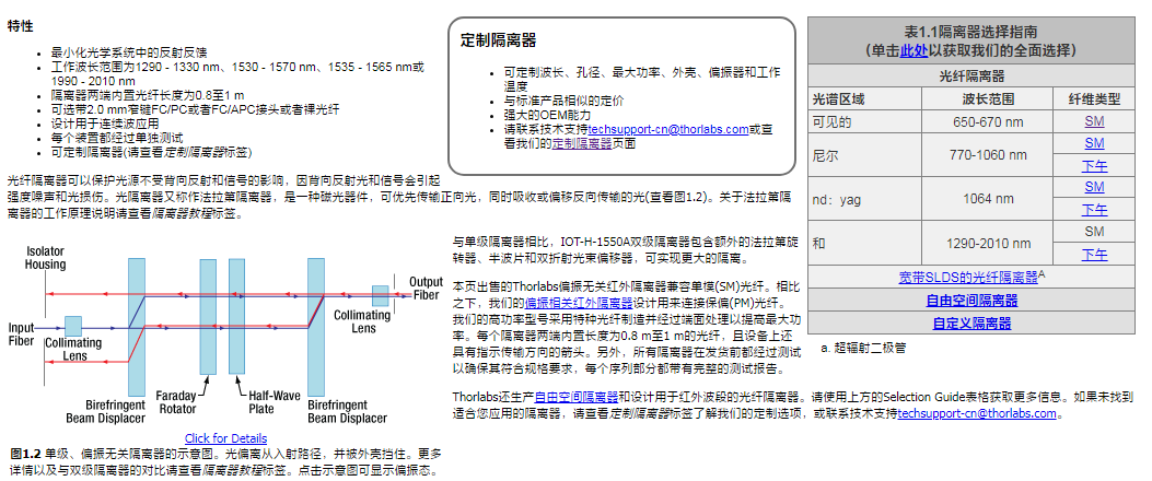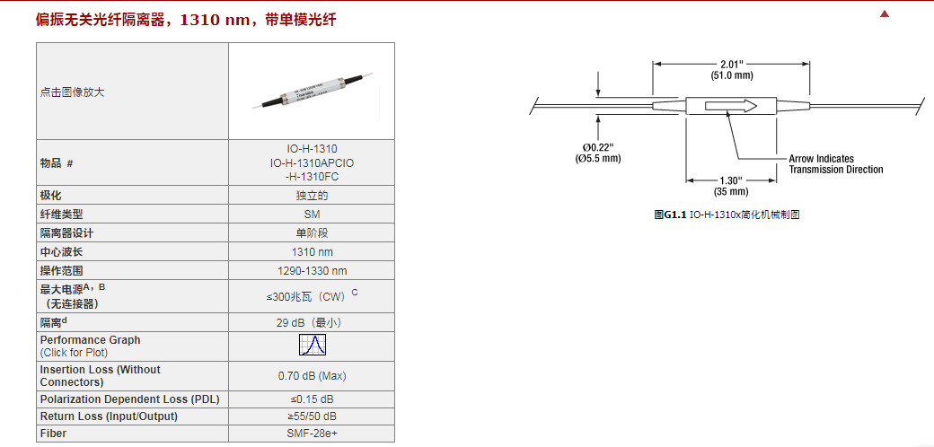 Thorlabs索雷博 IOT-H-1550A - 双级光纤隔离器