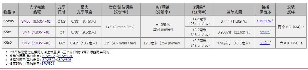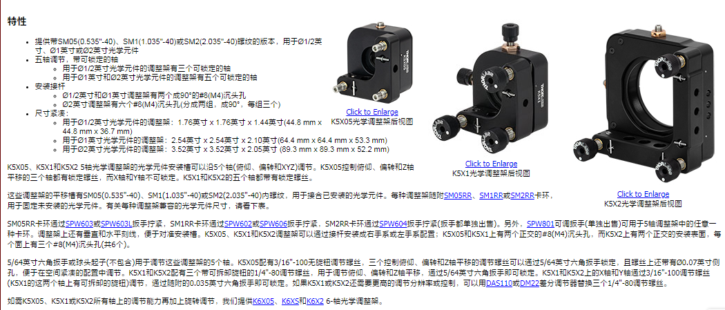 Thorlabs索雷博 K5X05 - 5轴光学调整架