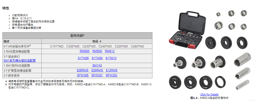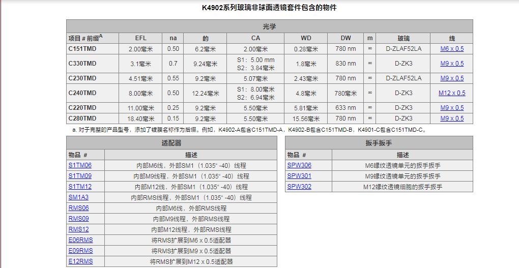 Thorlabs索雷博 K4902-B - 非球面透镜套件